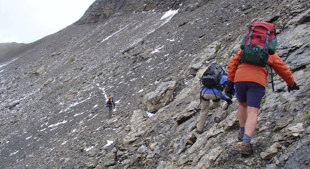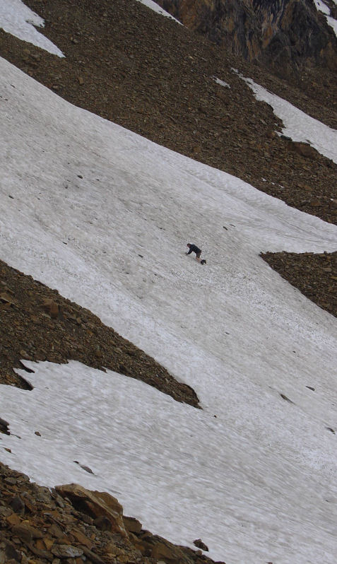 Descending from the Vignemale over steep ground. |