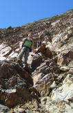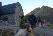 The last 100m to the top of the Vignemale is a steep, unprotected climb. The fact that the hill as almost empty was a bonus as the rock is very loose. There is no path and you just make your way, by the route you think best, to the top. We set off and without any problem or trouble were on the top of the Vignemale (3298m – highest French peak in the Pyrenees). The view was superb. Cloud inversion in the valley, peaks all around. The fact that the peak stands alone adding to the 'Made it, Ma! Top of the world!' feeling. The Gaube hut is visible from the top - 1250 metres below, but less than a mile as the crow flies. We rested for a while, Andrea made friends with the next party to arrive and eventually we set off back. Downhill was not so good on my feet. So it was a slow and leisurely descent back, but there was no rush, we drank in the views and stopped often. Back at the hut we drank a few beers and Andrea had a good look at the local talent.